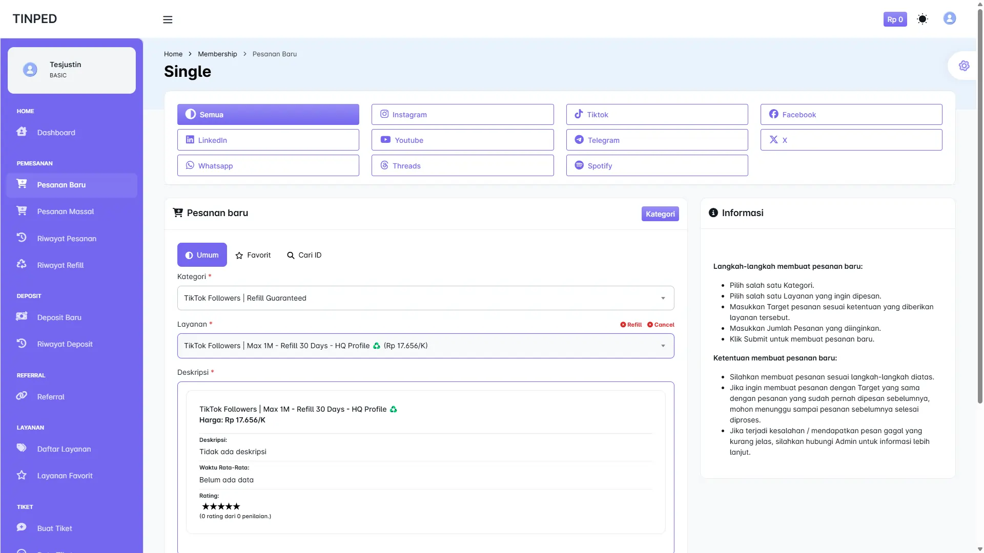 Tinped SMM adalah pusat panel SMM (Social Media Marketing) yang dirancang untuk membantu Anda meningkatkan performa media sosial secara optimal. Sebagai pusat panel smm, kami menawarkan solusi lengkap untuk meningkatkan followers, jangkauan, engagement, dan kredibilitas di berbagai platform media sosial populer seperti Instagram, TikTok, Facebook, YouTube, dan lainnya.